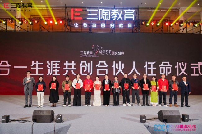 紧接着,合一生涯共创合伙人任命仪式开启,三陶教育创始人、董事长张锦超为合伙人颁发任命书,彰显三陶教育与合伙人同心共进、共创辉煌的坚定信念。